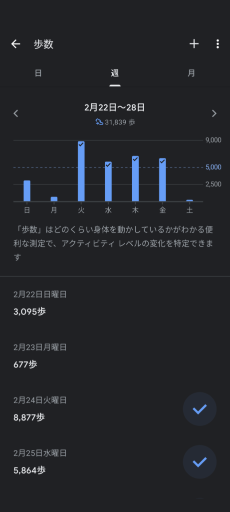 目に見えて効果が出ているのはモチベーションになりますね。今週も「1〜2駅ウォーキング」を軸に、無理のない範囲で体を動かしていきます。
