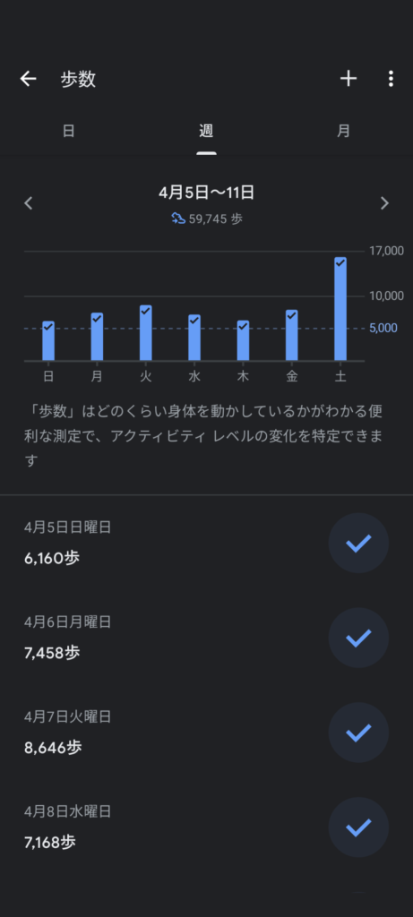ただ、その分週末に積極的に外出したおかげで、歩数をしっかり稼ぐことができました。